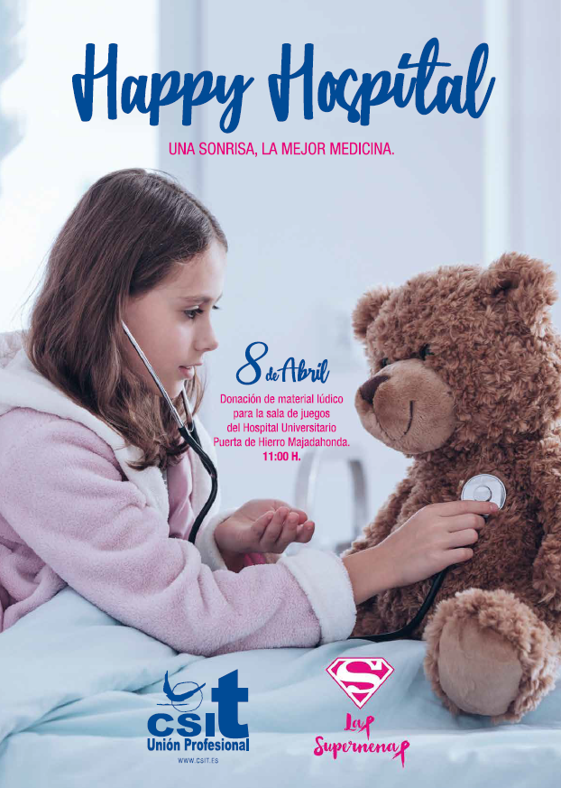 Gracias a la solidaridad, de las personas que formamos CSIT UNIÓN PROFESIONAL y el Colectivo SUPERNENAS, vamos a repartir un cargamento de felicidad, risas y juegos en el HOSPITAL PUERTA DE HIERRO. Para que todos esos pequeños campeones que tienen que estar en el Hospi, tengan un montón de juegos para divertirse