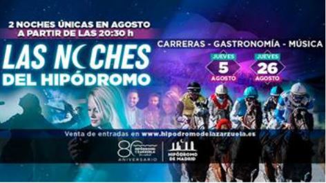 El Hipódromo de Madrid se despide de la temporada estival y de las "Noches del Hipódromo” este jueves 26 de agosto.