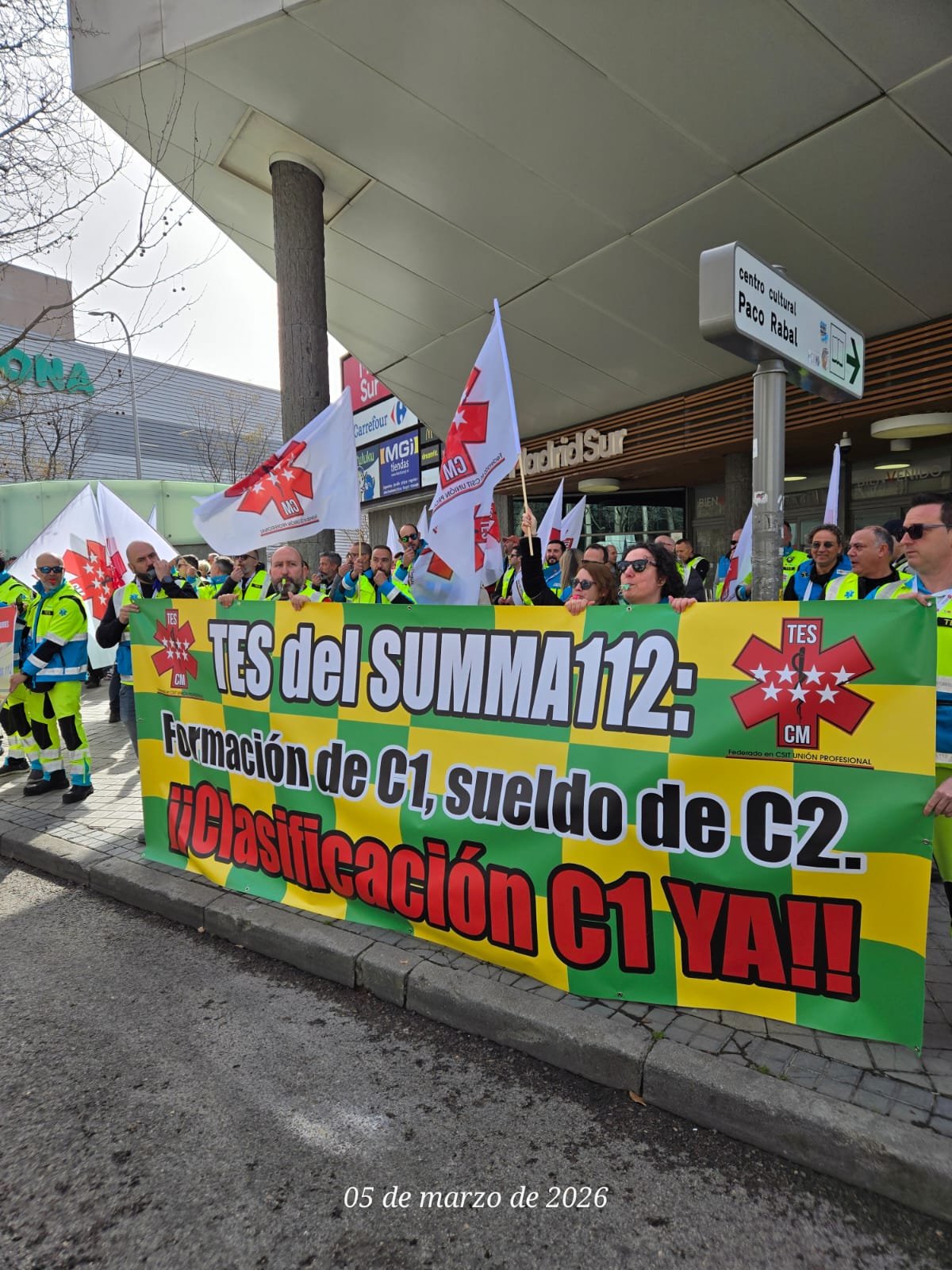 El Sindicato de Técnicos de Emergencias Sanitarias de la Comunidad de Madrid, TESCM, federado en CSIT UNIÓN PROFESIONAL, que hoy ha estado apoyando al colectivo en la concentración ante la Asamblea de Madrid, ha remitido una carta a la Consejera de Sanidad en la que solicita la adecuación de la clasificación profesional de los Técnicos de Emergencias Sanitarias (TES) del SUMMA 112 al subgrupo C1.