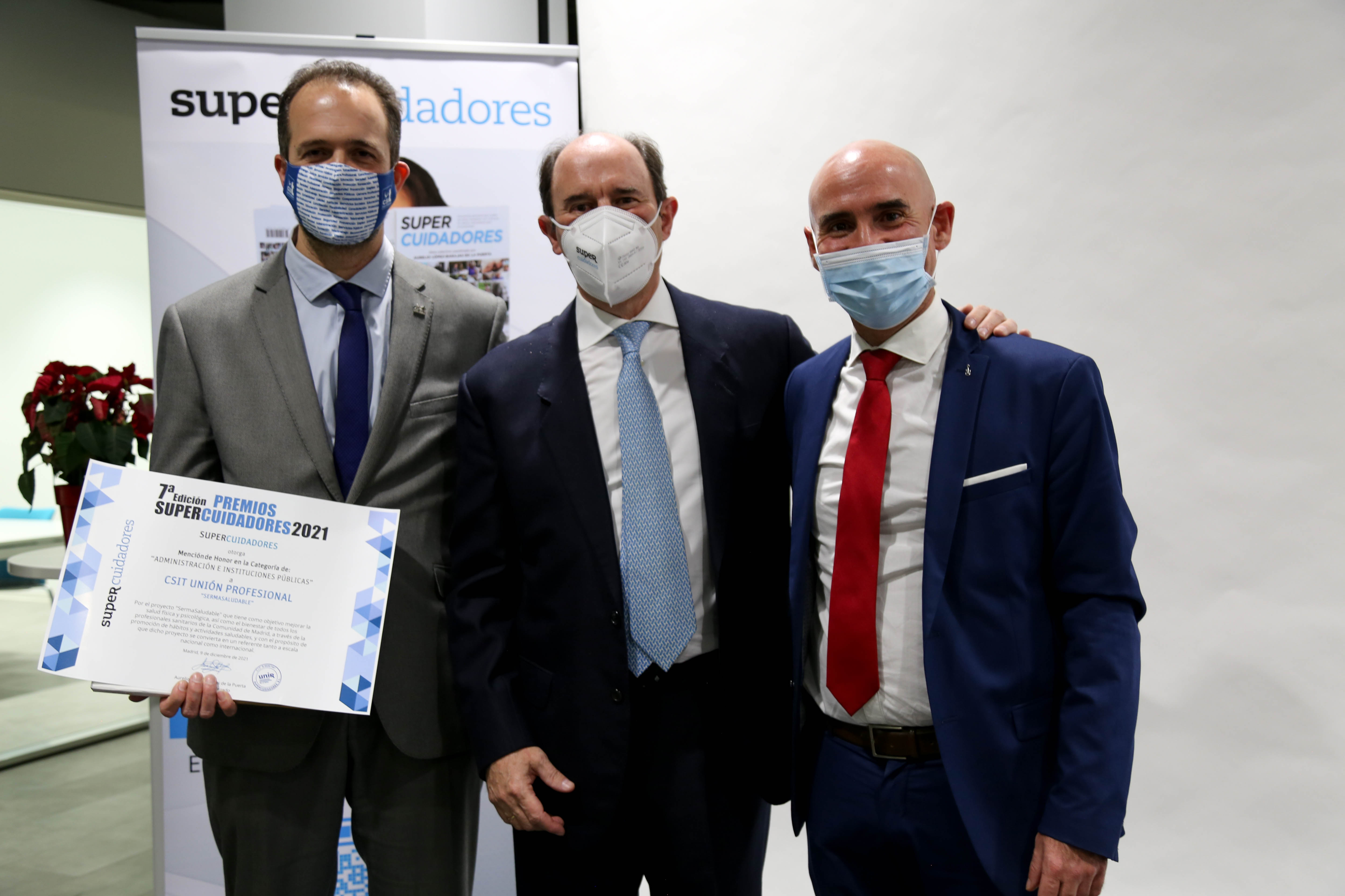 Ayer, durante la 7ª Edición de los Premios Supercuidadores 2021 de la Universidad Internacional de la Rioja, retransmitida por streaming, CSIT UNIÓN PROFESIONAL fue galardonada con la Mención de Honor por su proyecto “SermaSaludable: Cuidar al que cuida”, desarrollado y coordinado por nuestro delegado José Luis Martínez.