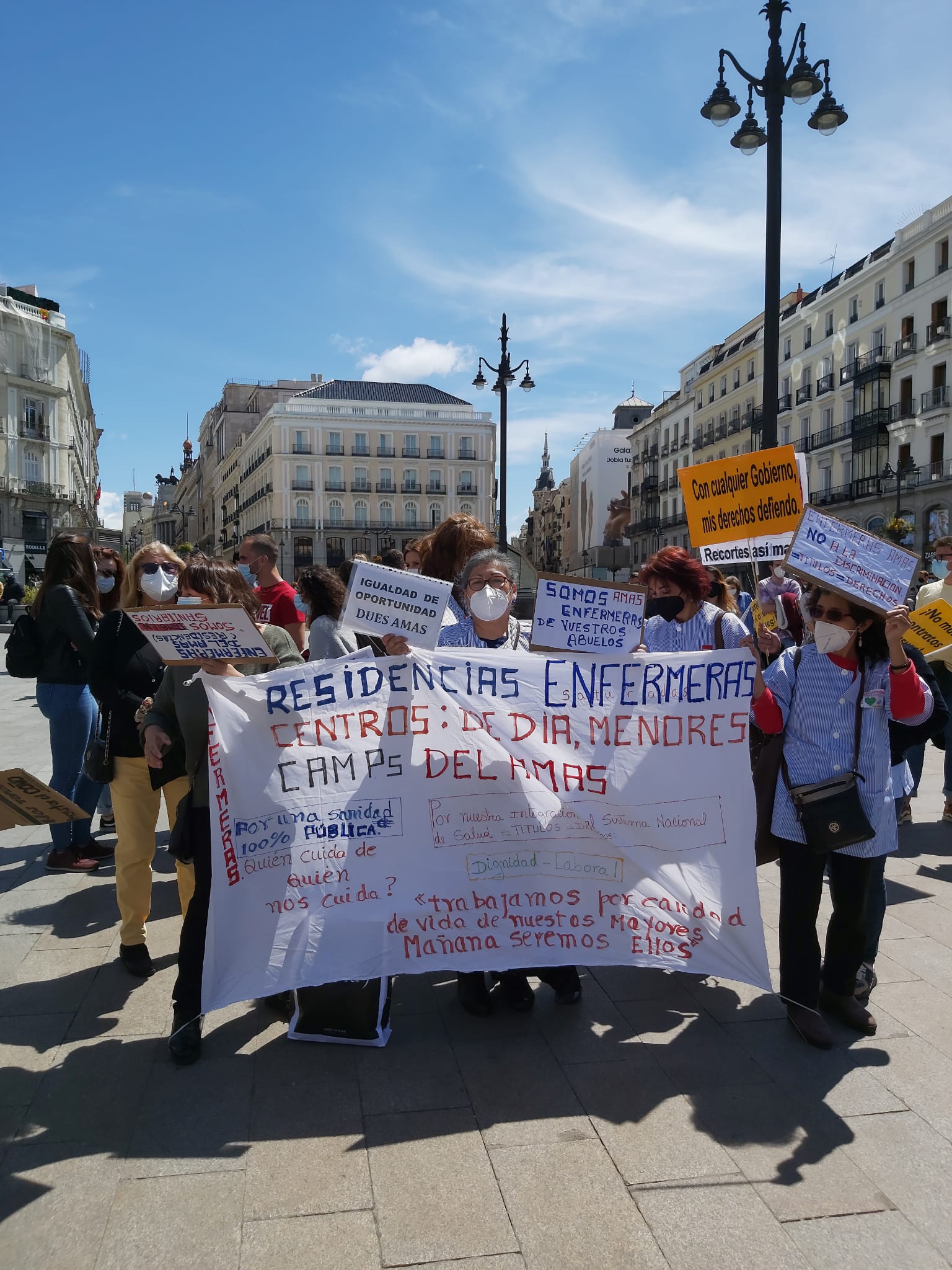 Hoy, 12 de mayo, a las 12 horas, casi un año después del comienzo de la crisis sanitaria por COVID-19, SIPEM, Sindicato Independiente de Profesionales Sanitarios y Titulados Universitarios de Madrid, federado en CSIT UNIÓN PROFESIONAL, coincidiendo con el Día Internacional de la Enfermería, se ha unido a la  iniciativa promovida por la plataforma Enfermería de Madrid Unida,  acudiendo a la madrileña Puerta del Sol  para alzar la voz y reclamar cuestiones, compartidas, demandadas y defendidas por estas organizaciones sindicales, que afectan directamente a este colectivo.