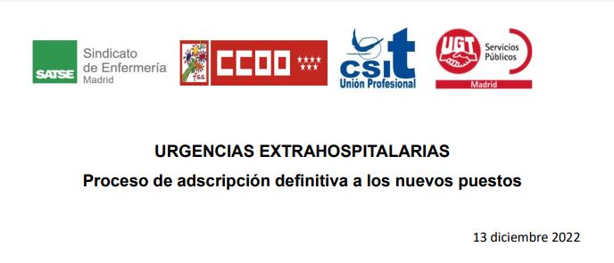 Comunicado conjunto sobre Urgencias Extrahospitalarias: Proceso de adscripción definitiva a los nuevos puestos