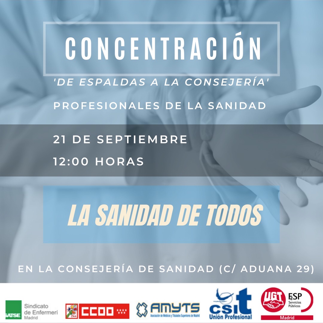 El lunes 21 de septiembre a las 12:00 h. nos vemos ante la sede de la Consejería de Sanidad, en la calle Aduana, 29, para darle la espalda.
