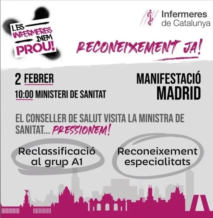 Desde el Sindicato Independiente de Profesionales Sanitarios y Titulados Universitarios de Madrid, SIPEM, federado en CSIT UNIÓN PROFESIONAL, en atento compromiso a las reivindicaciones de las Enfermeras, acudimos nuevamente para sumar nuestras voces a la convocatoria de manifestación de Infermeres de Catalunya, en la defensa de los derechos laborales del colectivo y por unas condiciones laborales dignas.