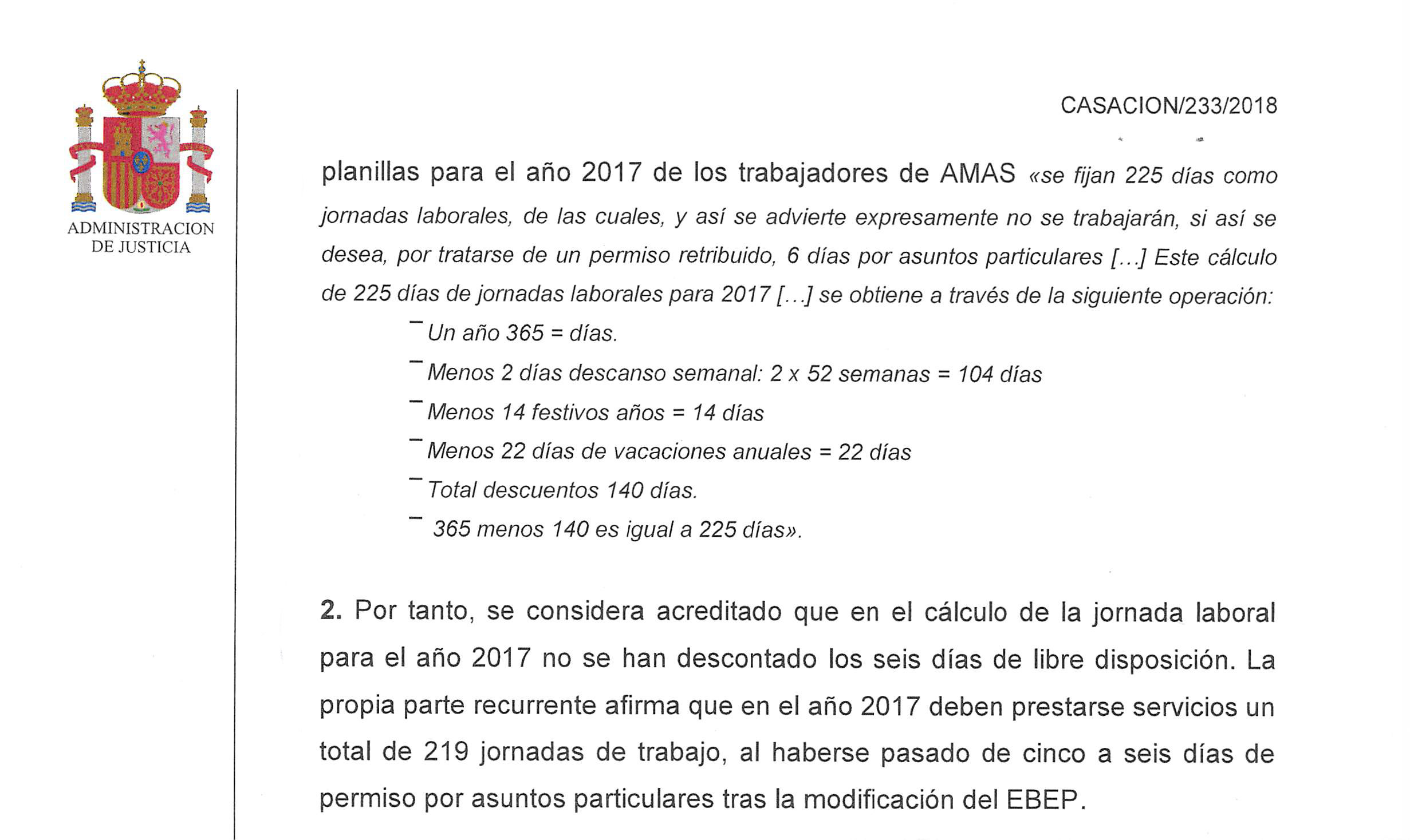 Así, la Justicia dictamina que el trabajador podrá disfrutar de estos días cuando éste lo requiera, siempre y cuando el servicio esté cubierto y se demanden dentro del año correspondiente, igual que sucede con otros permisos, como los concedidos por matrimonio o cambio de domicilio, al tratarse, también, de PERMISOS NO RECUPERABLES.