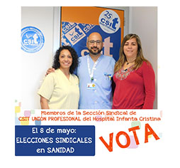 El 8 de mayo, CSIT UNIÓN PROFESIONAL concurre a las elecciones sindicales en las que los profesionales de las Instituciones dependientes de la Consejería de Sanidad podrán elegir a los compañeros que creen que mejor defenderán sus derechos en los Órganos de representación.
