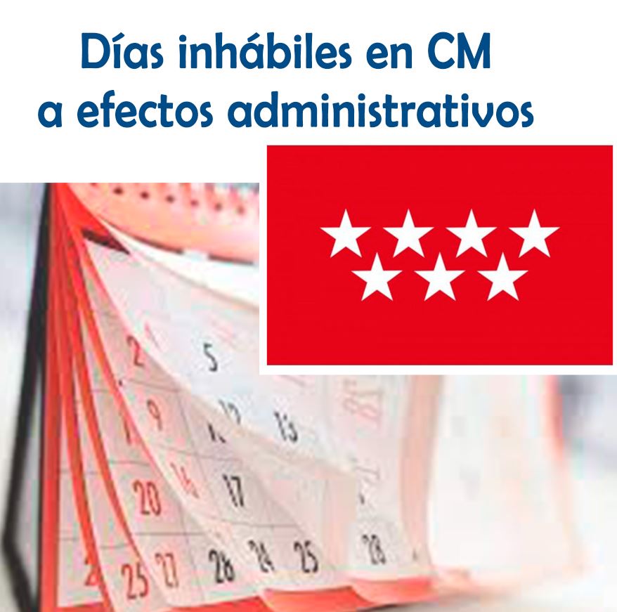 El BOCM ha publicado el Acuerdo de 29 de diciembre de 2021, del Consejo de Gobierno, por el que se fija el calendario para el año 2022 de días inhábiles a efectos del cómputo de plazos administrativos en la Comunidad de Madrid.