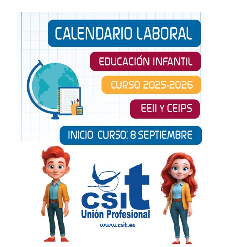 El equipo de CSIT UNIÓN PROFESIONAL ha estado negociando con la Administración para alcanzar un Calendario Laboral para el ámbito de la Educación Infantil de la Comunidad de Madrid, durante el curso 2025/2026, que representa un avance importante con el objetivo principal de ofrecer claridad y una aplicación homogénea en todos los centros.