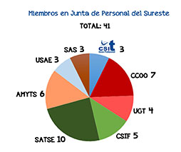 GRACIAS a vuestros votos, CSIT UNIÓN PROFESIONAL ha obtenido 3 delegados en la Junta de Personal de la Dirección Asistencial SURESTE, donde obtendríamos un 7,31% de la representatividad.