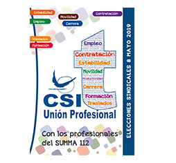 En estos años, CSIT UNIÓN PROFESIONAL ha estado trabajando por los derechos de los profesionales del SUMMA 112, avanzando contigo en cada una de sus conquistas. Para que CSIT UNIÓN PROFESIONAL pueda seguir avanzando en la mejora de las condiciones de trabajo y profesionales del personal del SUMMA 112, el 8 de mayo, elige a los compañeros que mejor defenderán tus derechos en los Órganos de Representación, VOTA CSIT UNIÓN PROFESIONAL.