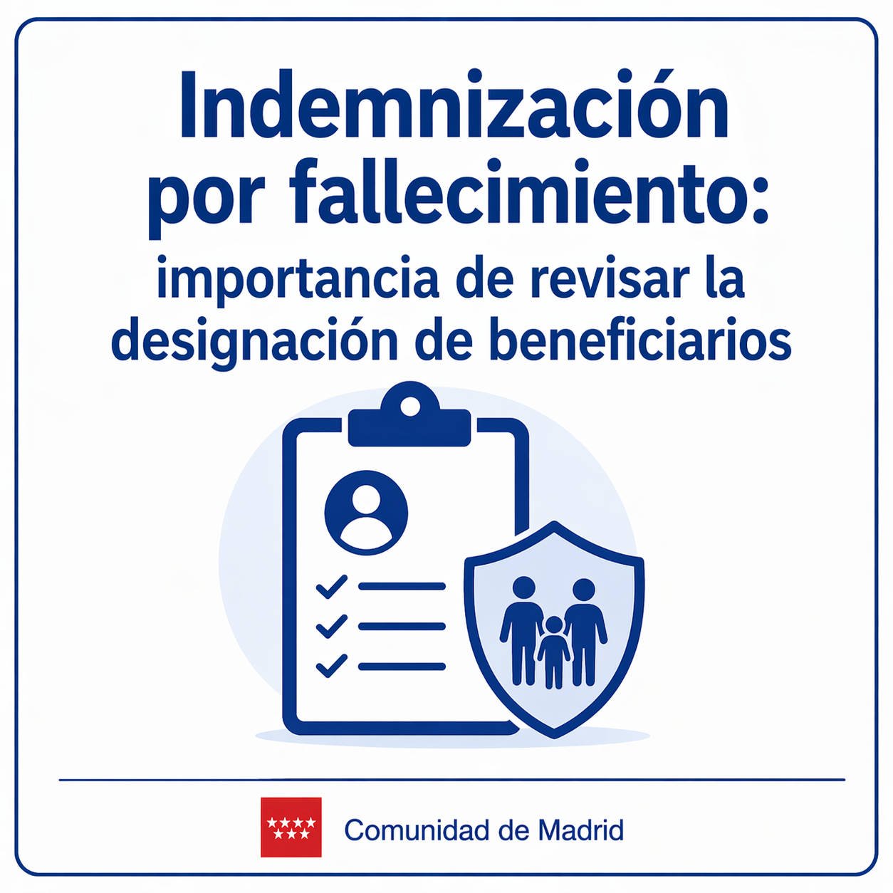 CSIT UNIÓN PROFESIONAL informa al personal laboral y funcionario de la Comunidad de Madrid, adscritos respectivamente al Convenio Colectivo Único para el personal laboral de la Comunidad de Madrid y al Acuerdo Sectorial para personal funcionario de administración y servicios de la Comunidad de Madrid (2025-2028), sobre la importancia de mantener actualizada la designación de beneficiarios en relación con la indemnización por fallecimiento.