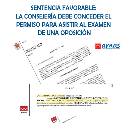 La sentencia condena a la Consejería a conceder a la trabajadora de la AMAS el día de permiso para asistir al examen de las pruebas selectivas convocadas por la Administración de la Comunidad de Madrid.