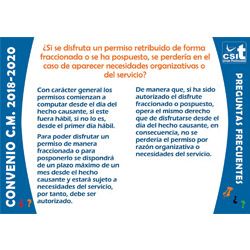 Preguntas y Respuestas sobre Convenio y Acuerdo CM 2018 - 2019 Si se disfruta un permiso retribuido de forma fraccionada o se ha pospuesto, ¿se perdería en el caso de aparecer necesidades organizativas o del servicio?