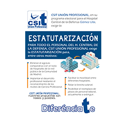 CSIT UNIÓN PROFESIONAL, en su programa electoral para el Hospital Central de la Defensa Gómez Ulla exige la estatutarización para, entre otros motivos: