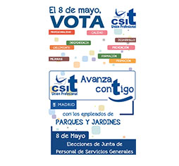 El próximo 8 de mayo, CSIT UNIÓN PROFESIONAL concurrirá a las elecciones sindicales en las que los Empleados Públicos de Parques y Jardines del Ayuntamiento de Madrid podrán elegir a los compañeros que creen que mejor defenderán sus derechos en los Órganos de representación.