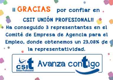Gracias a los votos obtenidos en las elecciones sindicales celebradas en el día de hoy, CSIT UNIÓN PROFESIONAL logra 3 representantes de Comité de Empresa en la Agencia para el Empleo.