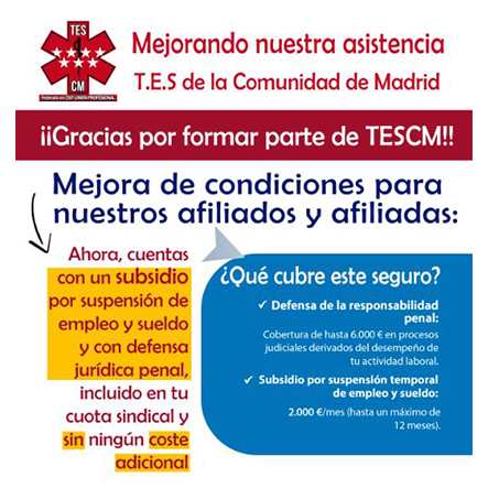 Hace un año que comenzamos el proyecto del Sindicato de Técnicos de Emergencias Sanitarias de la Comunidad de Madrid, TESCM, federado en CSIT UNIÓN PROFESIONAL, para mejorar la gestión de los Técnicos en Emergencias Sanitarias específicamente desde Madrid y poder dar una buena asistencia a los compañeros y compañeras TES que trabajan con las peculiaridades de la región.