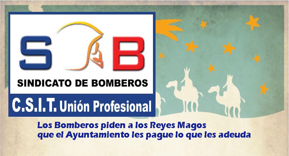 Desde el Sindicato de Bomberos hemos remitido nuestra petición a los Reyes Magos para que de una vez por todas el Ayuntamiento pague las cantidades que adeuda a los bomberos. Asimismo, hemos pedido que a partir de ahora cumpla la puntualidad en el pago de estos conceptos en nuestras nóminas para no tener que esperar a cobrar los servicios extraordinarios seis meses después de haberlos realizado.