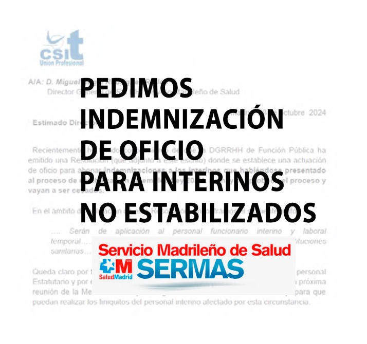 Solicitamos al SERMAS que facilite de oficio, la indemnización por cese para el Personal Estatutario no estabilizado