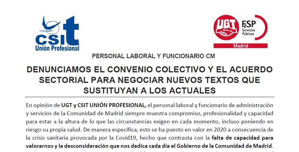 Denunciamos el Convenio y el Acuerdo de personal laboral y funcionario de CM, para negociar nuevos textos que sustituyan a los actuales