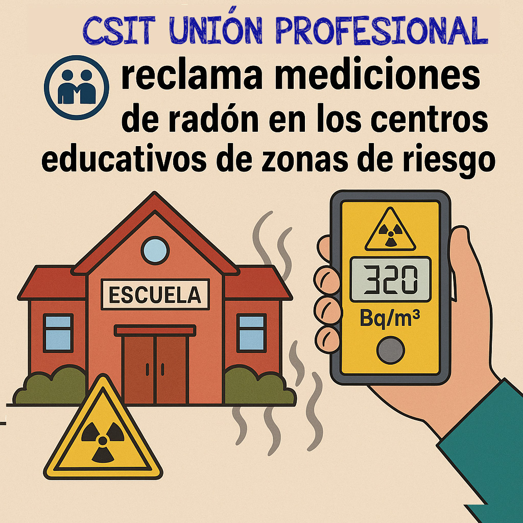 El Sindicato Docentes de Madrid, federado en CSIT UNIÓN PROFESIONAL, ha solicitado formalmente, a través de su Departamento de Salud Laboral, a las Direcciones de Área Territorial (DAT) Madrid-Norte y Madrid-Oeste que inicien de forma inmediata las mediciones de gas radón en los centros educativos ubicados en zonas de actuación prioritaria. Esta obligación está establecida en la Ley 31/1995 de Prevención de Riesgos Laborales, el Real Decreto 1029/2022 y la Instrucción IS-47 del Consejo de Seguridad Nuclear, que exigen medir los niveles de radón, incorporarlos a la evaluación de riesgos y aplicar medidas correctoras cuando se superen los 300 Bq/m³.