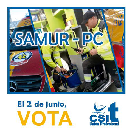 El próximo 2 de junio, CSIT UNIÓN PROFESIONAL concurre a las elecciones sindicales para la Junta de Personal de Servicios a la Comunidad. En dicho ámbito, CSIT UNIÓN PROFESIONAL se compromete a defender para el SAMUR - PC, las siguientes reivindicaciones: