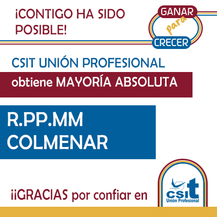 Desde CSIT UNIÓN PROFESIONAL, reiteramos el compromiso de nuestros representantes para trabajar en esta nueva etapa por y para los intereses del conjunto del personal de la Residencia de Colmenar, lo que consideramos que es el mejor agradecimiento a todos los trabajadores y profesionales que nos han votado y han confiado en nuestras siglas para ello.