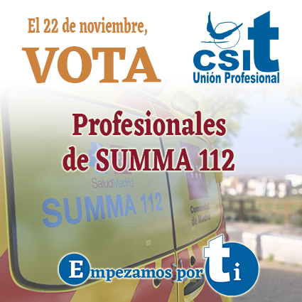 En CSIT UNIÓN PROFESIONAL empezamos por ti y para seguir mejorando en las condiciones laborales y profesionales del personal del SUMMA 112, contamos contigo y tú con nosotros.