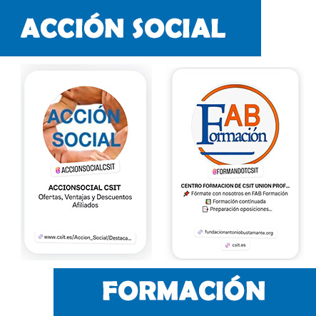 Sigue las nuevas cuentas de CSIT UNIÓN PROFESIONAL en Instagram: Acción Social y Formación