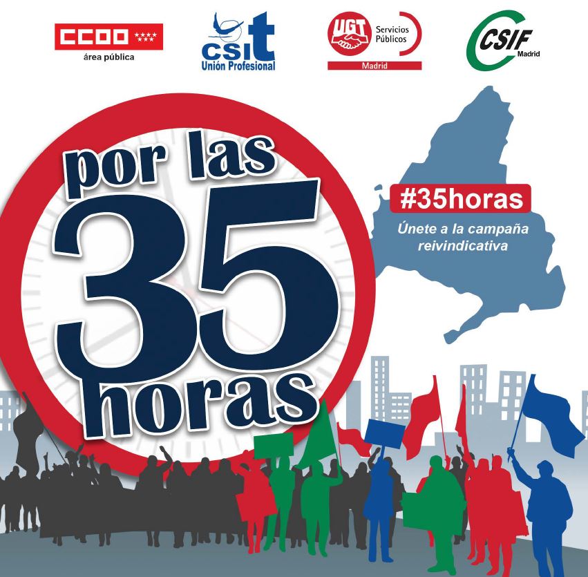 Desde CCOO, CSIT UNIÓN PROFESIONAL, UGT y CSIF volvemos a exigir a la Comunidad de Madrid la jornada de 35 horas, porque: