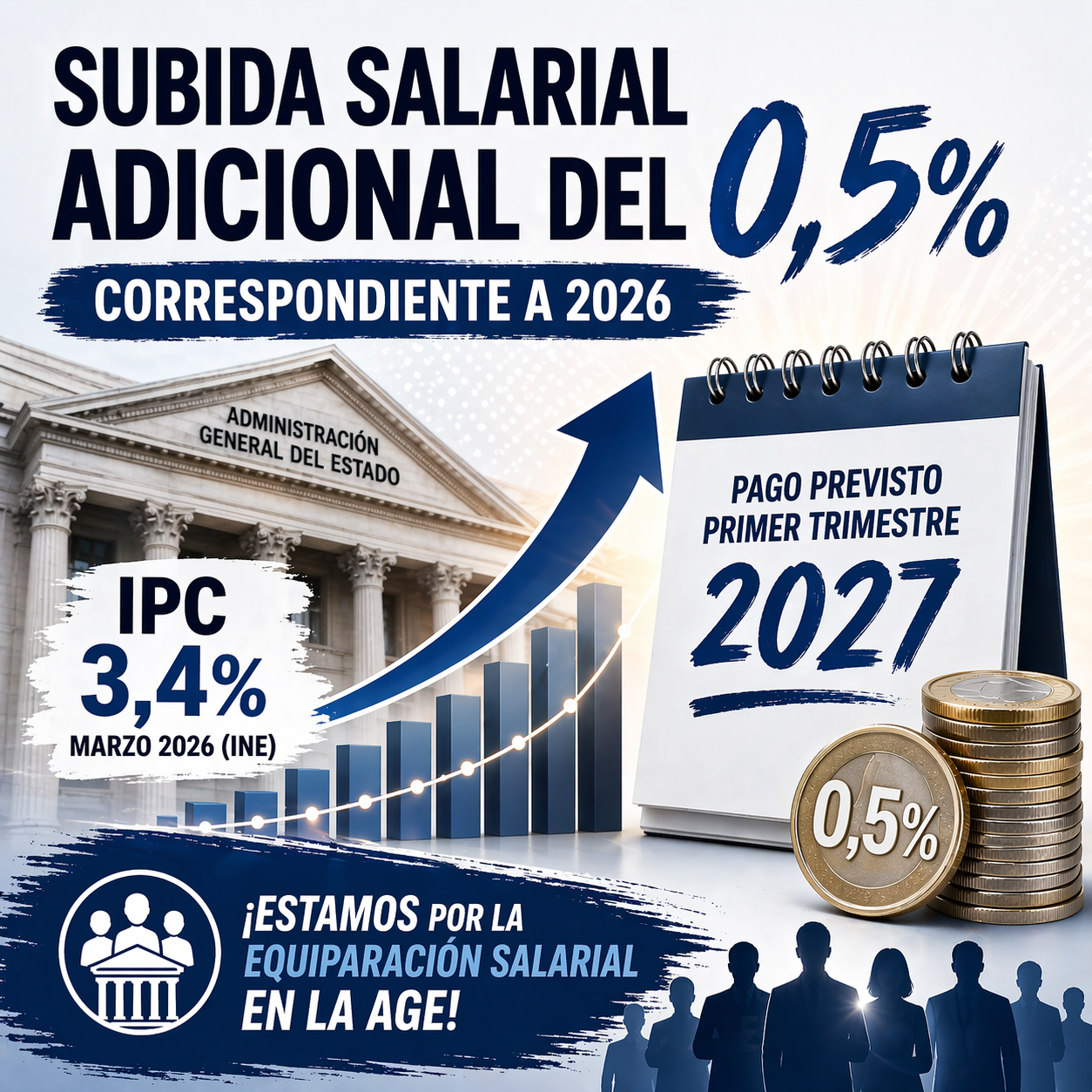 El Área de Administración General del Estado de CSIT UNIÓN PROFESIONAL informa de que, conforme a la evolución del IPC, se cumplen las condiciones para la aplicación de una subida salarial adicional del 0,5 % correspondiente al ejercicio 2026.