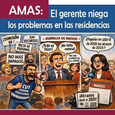En la sesión del 16/3/26 de la Comisión de Familia y Asuntos Sociales de la Asamblea de Madrid, a la que asistieron varios delegados de CSIT UNIÓN PROFESIONAL y miembros de los Comités de Empresa denunciantes de la insostenible situación que atraviesan las residencias de mayores de la AMAS, el gerente durante su comparecencia, lejos de admitir los problemas derivados de la ineficiente gestión, ha negado que estos existan, exponiendo una versión que dista mucho de la realidad que, día a día, padecen residentes, familiares y trabajadores.
