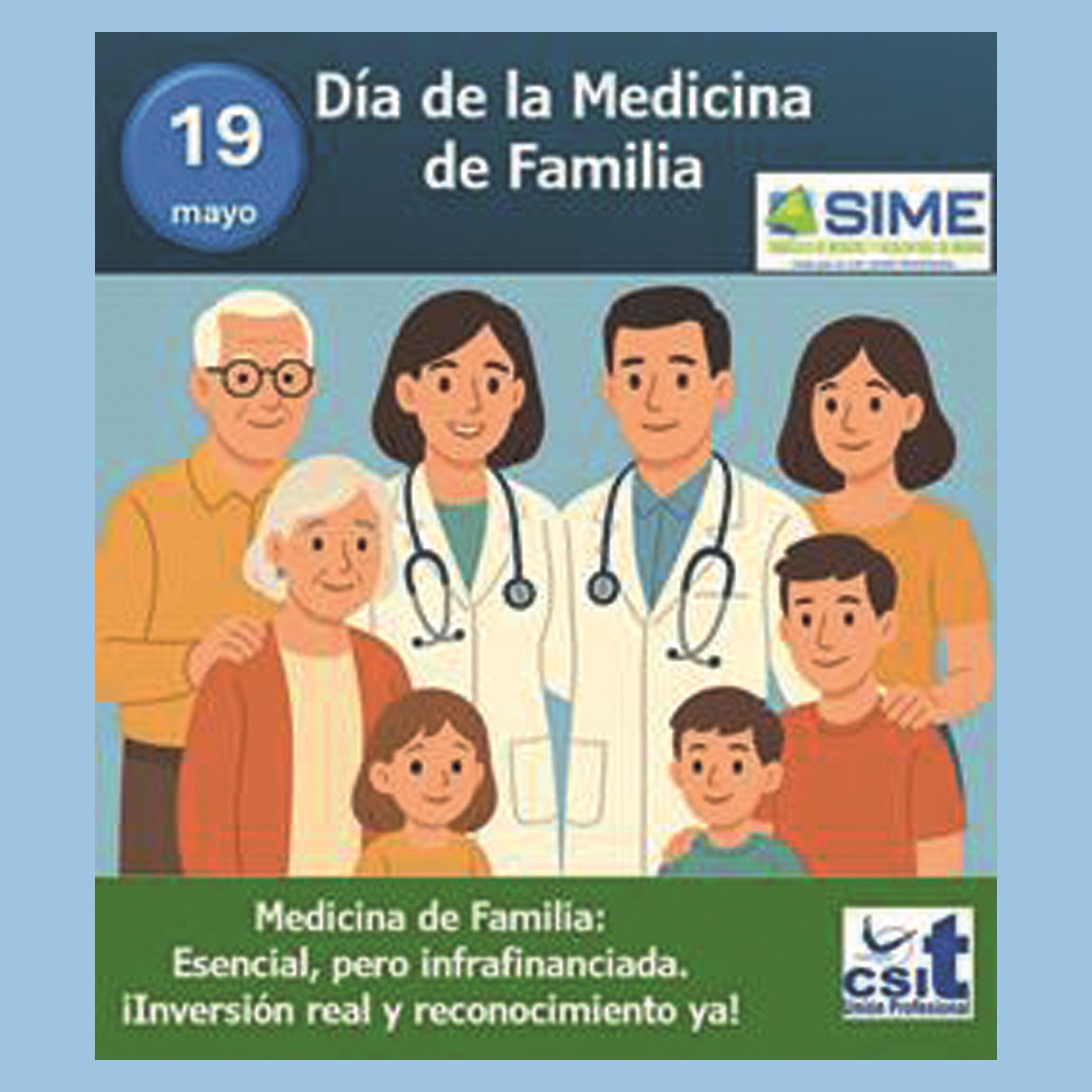 Desde el Sindicato de Médicos y Facultativos de Madrid (SIME), federado en CSIT UNIÓN PROFESIONAL, recordamos, que los médicos de familia, junto con el resto de profesionales que conforman la Atención Primaria, ofrecen una atención integral y cercana, acompañando a las personas a lo largo de su vida y fortaleciendo la confianza en la relación médico-paciente. Son cercanos, accesibles, de confianza para las personas.