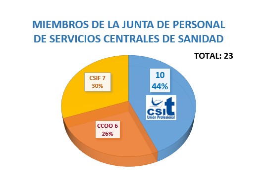 Las actas de las mesas electorales del personal funcionario de los Servicios Centrales, Salud Pública e Inspección sanitaria conceden a CSIT UNIÓN PROFESIONAL el liderazgo, con 10 representantes sindicales, sobre un total de 23 que conforma la Junta de Personal de la Consejería.